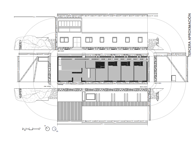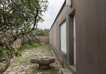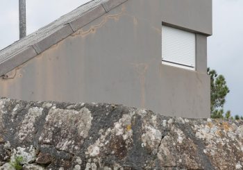 Por otra parte, la vivienda se sitúa sobre un terreno en suave pendiente con trayectoria hacia el mar, lo que condiciona su implantación y su relación con el terreno. La adaptación a esta topografía se resuelve mediante muros que se ajustan al desnivel natural.